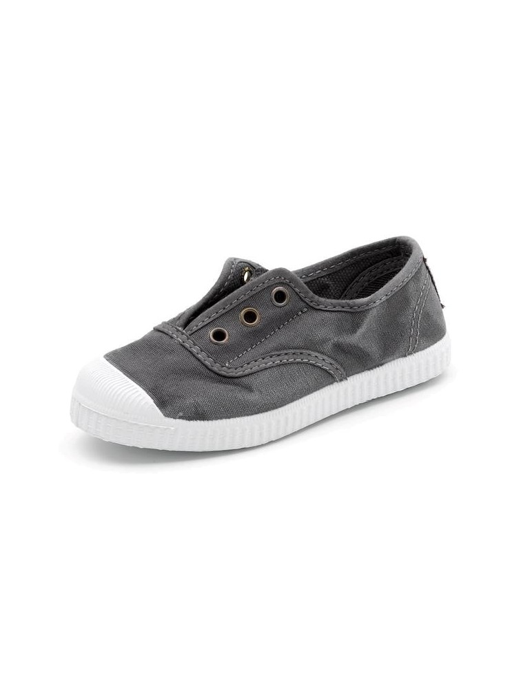 Baskets Cienta femme en toile gris anthracite à lacets, semelle blanche (Miclaure)