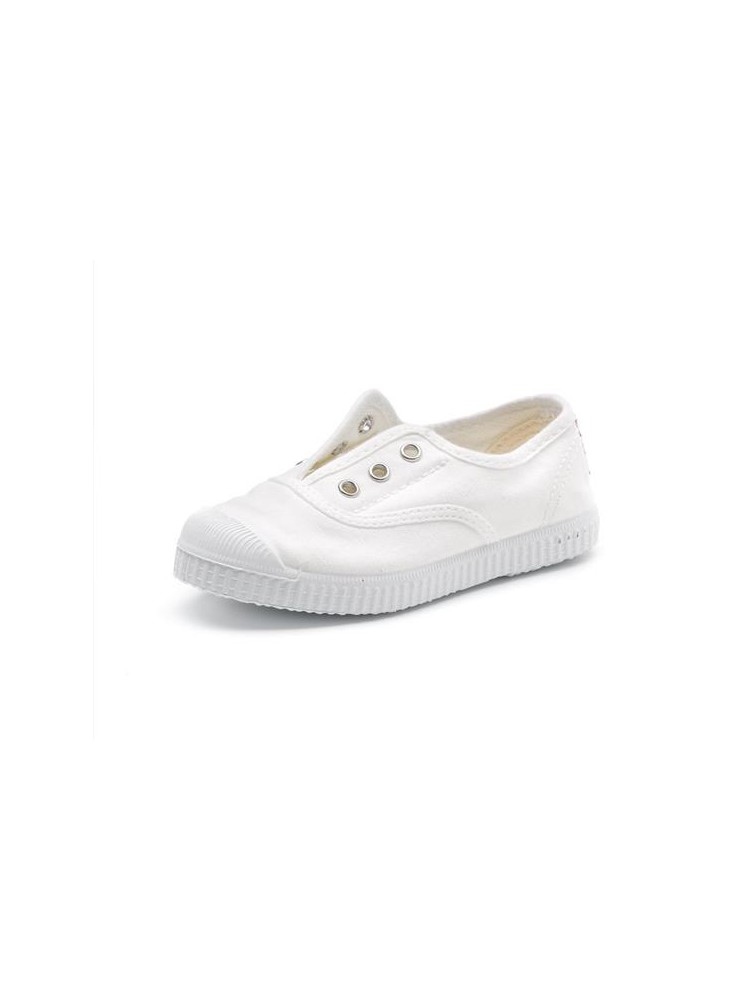 Baskets Cienta femme en toile blanche à œillets, semelle blanche (Miclaure)