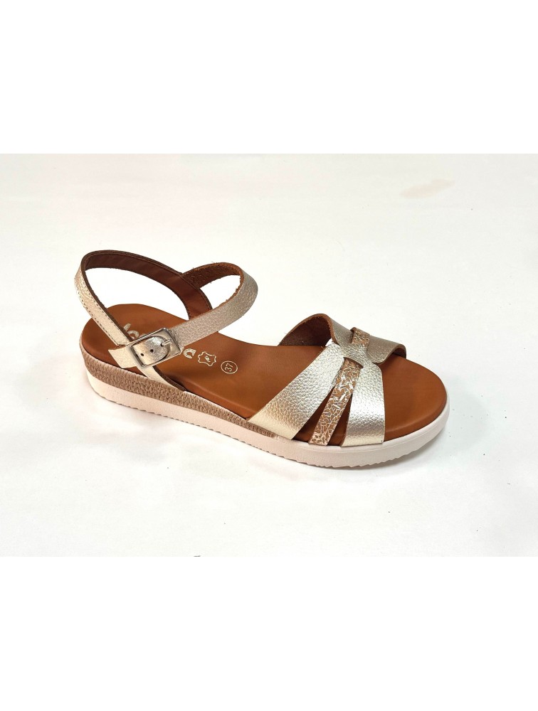 Sandales, compensées, Rael Jordana, femme, cuir, bicolore dorée/effet craquelé, bride boucle (Miclaure)