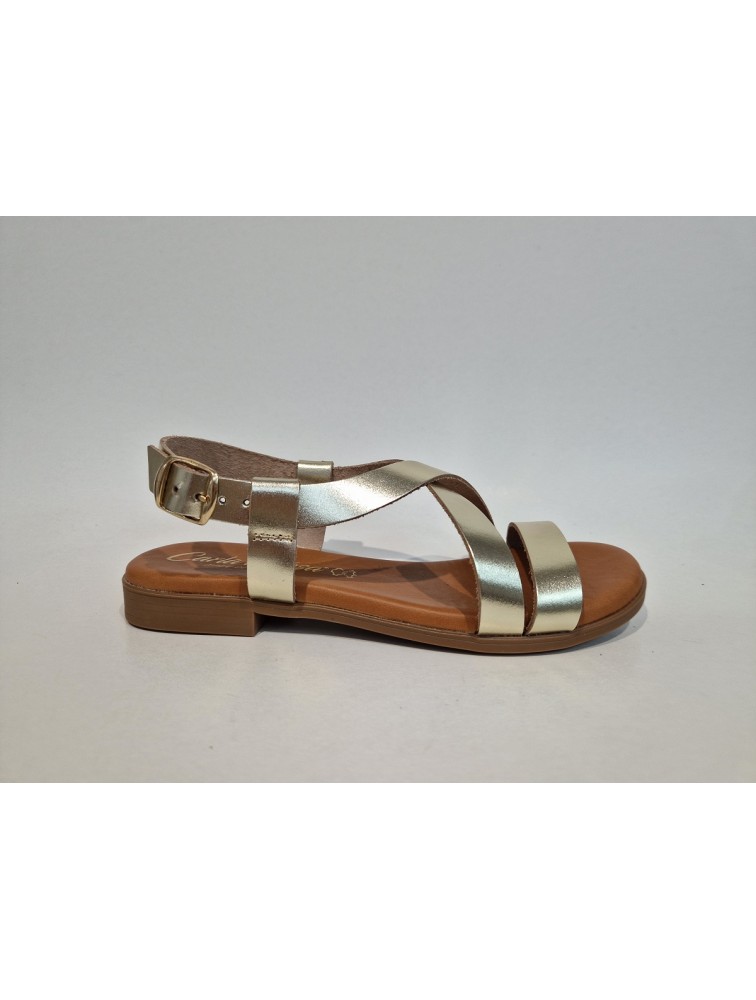 Sandales, Carla Tortosa, femme, cuir, modèle lami platino, dorée, bride boucle (Miclaure)