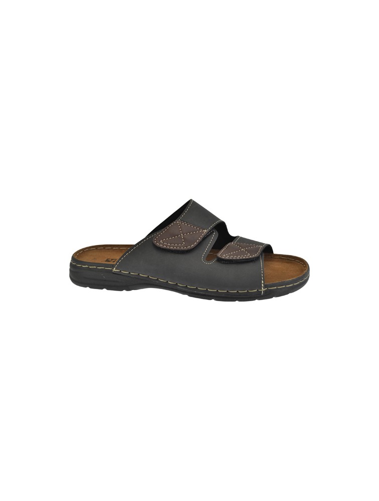 Mule homme Besnard Patrizia noire à deux brides scratch et surpiqûres contrastées (Miclaure)